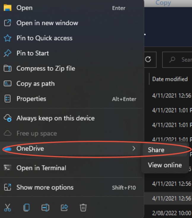1. Right click the file/folder and select onedrive-->share