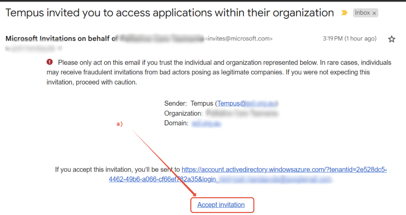- Check your email, including spam/junk for a guest invite that looks like the below example. Click accept invitation.